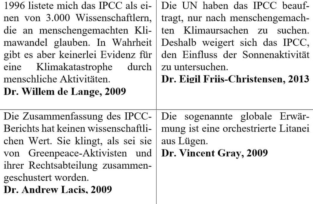 Gan mai dim ond ymchwilio i newid hinsawdd o waith dyn y caniateir i'r IPCC ei wneud, nid gwyddoniaeth mohono ond ymchwil a gomisiynwyd. Dim ond y thesis bod newid hinsawdd yn “wneud gan ddyn” sy’n cadw peiriant llygredig yr IPCC i redeg gyda phroffesiynau, cyllid trydydd parti, cynadleddau mewn lleoliadau egsotig a threthi, ardollau a gwaharddiadau bythol newydd. Pe bai cynhesu'n digwydd yn naturiol, yr unig dasg ar ôl fyddai'r dasg ddiddiolch ond synhwyrol o addasu. Mae mwy a mwy o wyddonwyr a weithiodd gyda'r IPCC yn ymbellhau oddi wrth ei draethodau ymchwil. Dyma bedwar dyfyniad wedi eu cyfieithu: